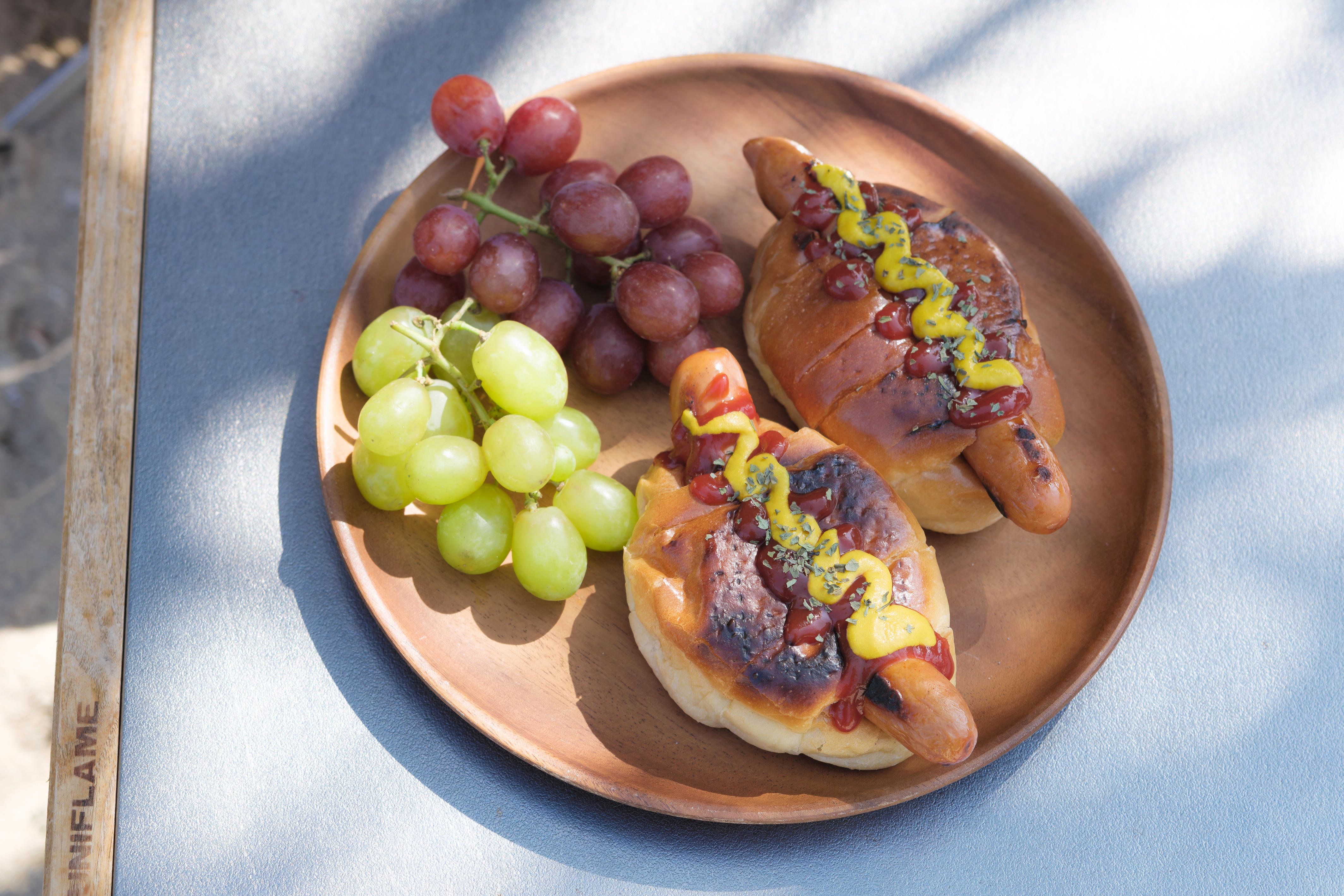 キャンプ好きで、クッカーやカセットコンロなど自前の調理ギアも持つHaoさんは、外でごはんを作って食べる機会が多いのだそう。誌面では、県産食材を作ったアクアパッツアを紹介しましたが、実はもう1品、ホットドッグを手作りしていました。パンの中に挟んでいるソーセージは、Haoさんの地元・沖縄市にある「TESIO」のもの。パリッとした食感と口の中でふわっと香るスパイスが食欲をそそる一品です。