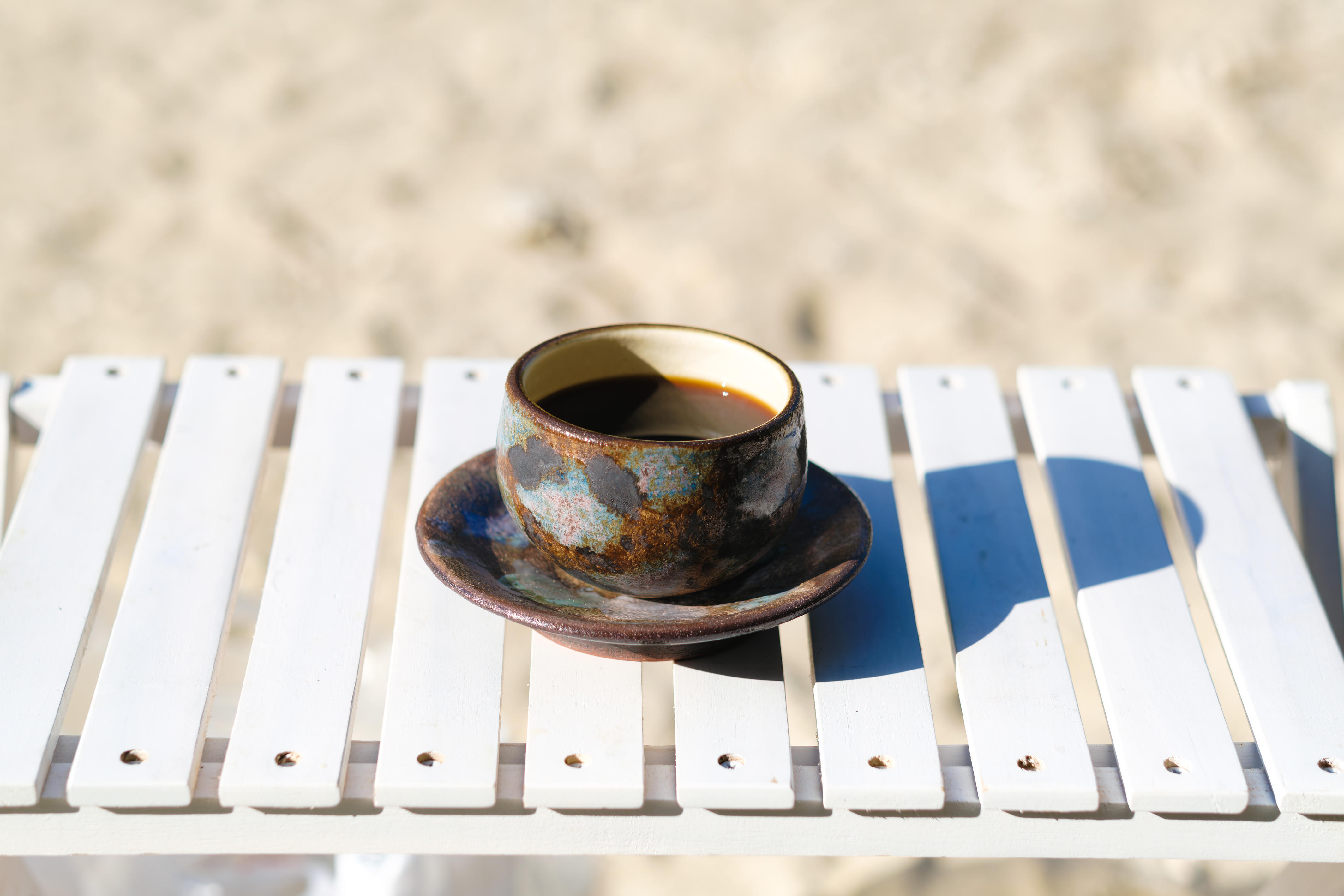 お気に入りの豆を手挽きして、外でコーヒーを淹れて飲む時間もHaoさんのお楽しみ。このときは、沖縄セラードコーヒーの豆を使いました。ちょっと手間をかけるからこそ、ビーチパーティーをより特別な時間にしてくれます。