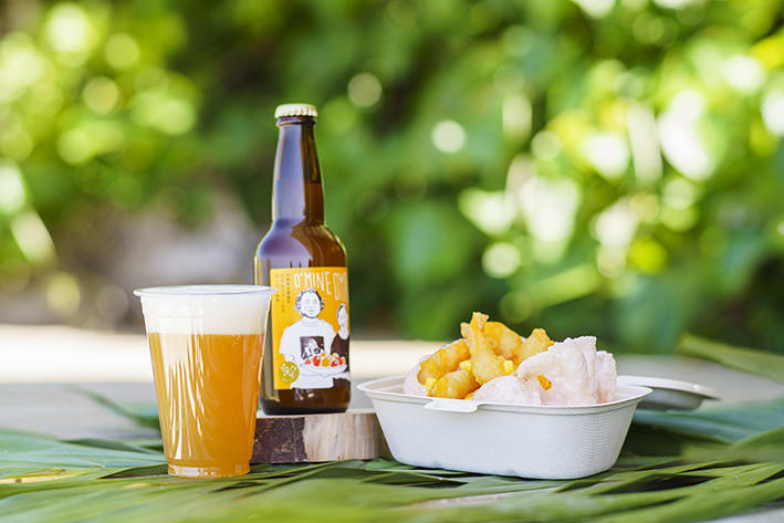 マンゴーを使ったクラフトビール(1,000円)を期間限定で提供。ビールのおつまみには、マンゴーソースで味わうフリット「マンゴーシュリンプ」(800円)をぜひ!