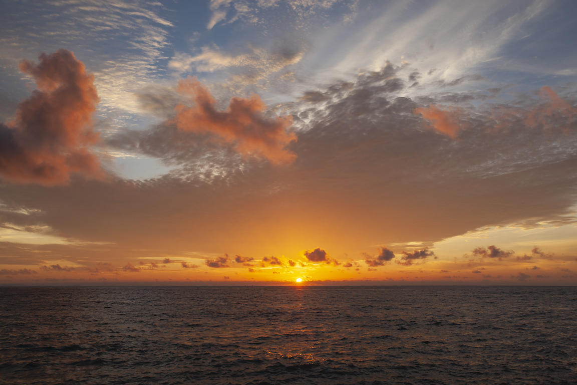 空と海が赤く染まる、強い太陽の色に見惚れた夕焼けでした。