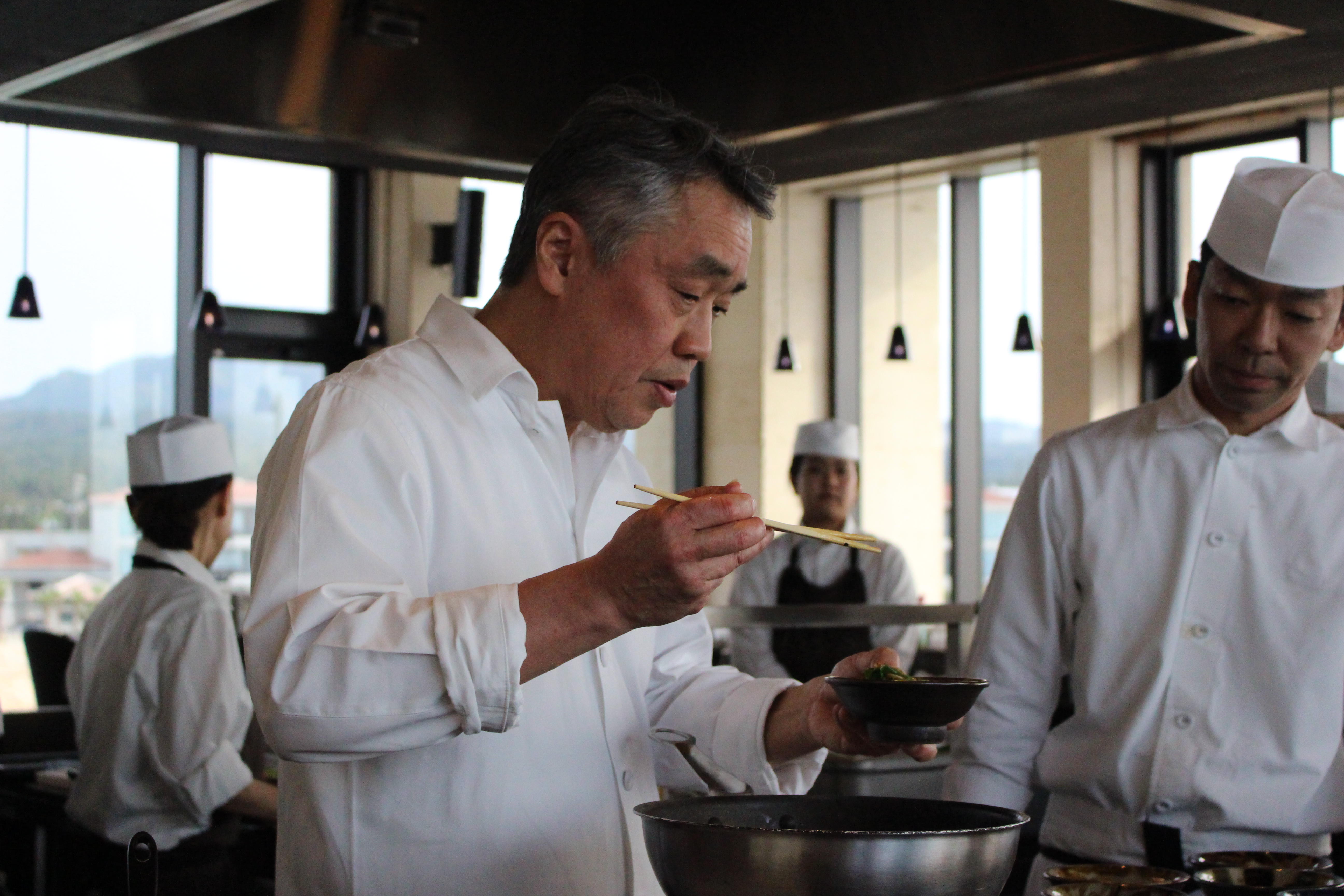 恩納村にあるリゾートホテル、「ハイアット リージェンシー 瀬良垣アイランド 沖縄」にある「スペシャリティレストランシラカチ 『琉球炉端 by Kanda』」では、ここでしか食べられない沖縄の食に出会うことができる。料理をプロデュースしたのは、2007年以来ミシュラン三ツ星を獲得し続ける和食の名店「かんだ」のオーナーシェフである料理人の神田裕行さん。