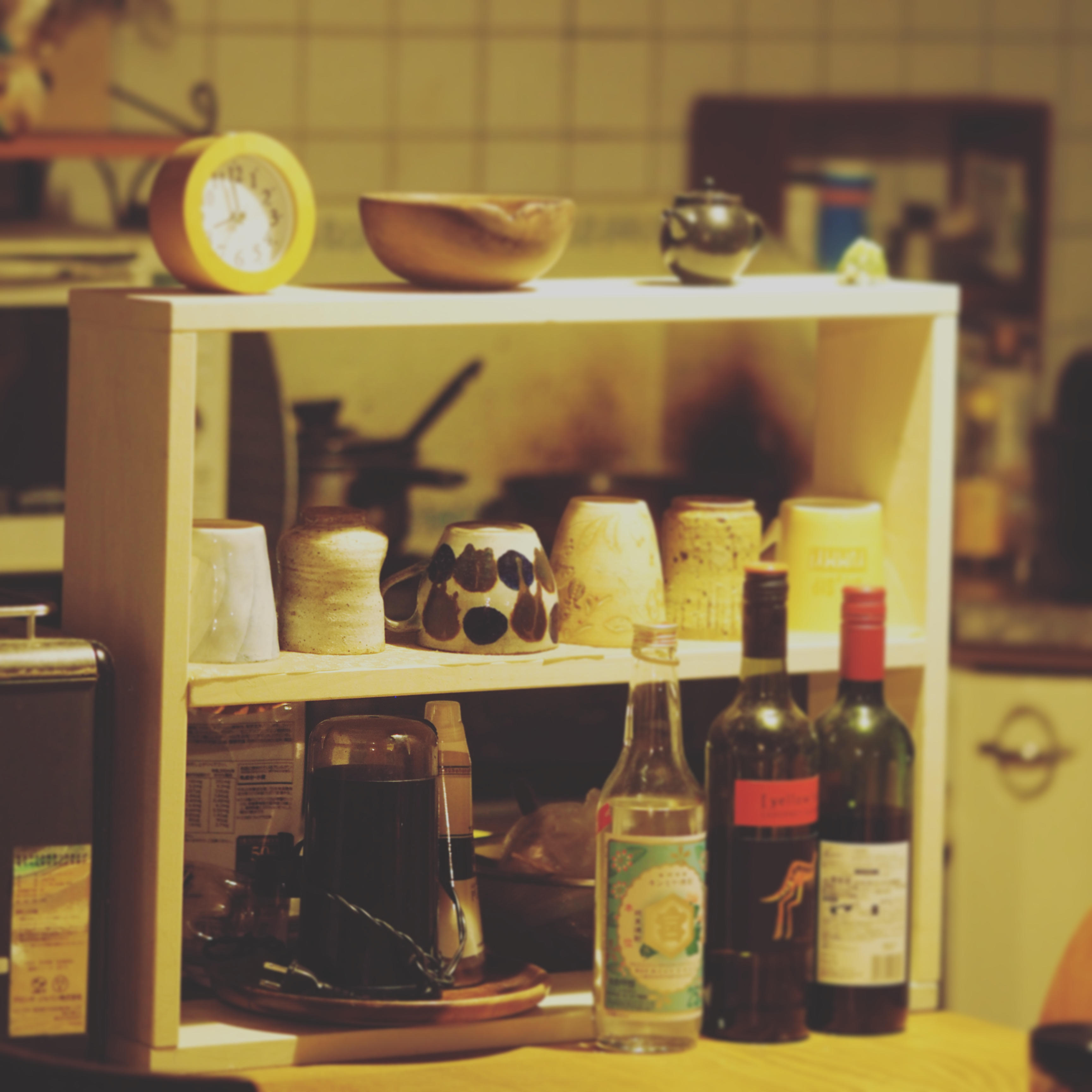 実は数年前に調味料棚を作ったときは、結構雑に作業したため完成後に傾いてしまいました。そこで今回は万全を期して最初に細かく寸法を測り、下穴を開けてから木ねじを打ち込むように心がけました。そのおかげもあってか自作とは思えない出来栄えとなり、家族一同びっくり。お気に入りの作家の器を収納したら、とてもおしゃれな雰囲気となりました。完成度の高さに満足して調子に乗ってしまい、そこから、調味料棚と小型のブックシェルフを作りました。