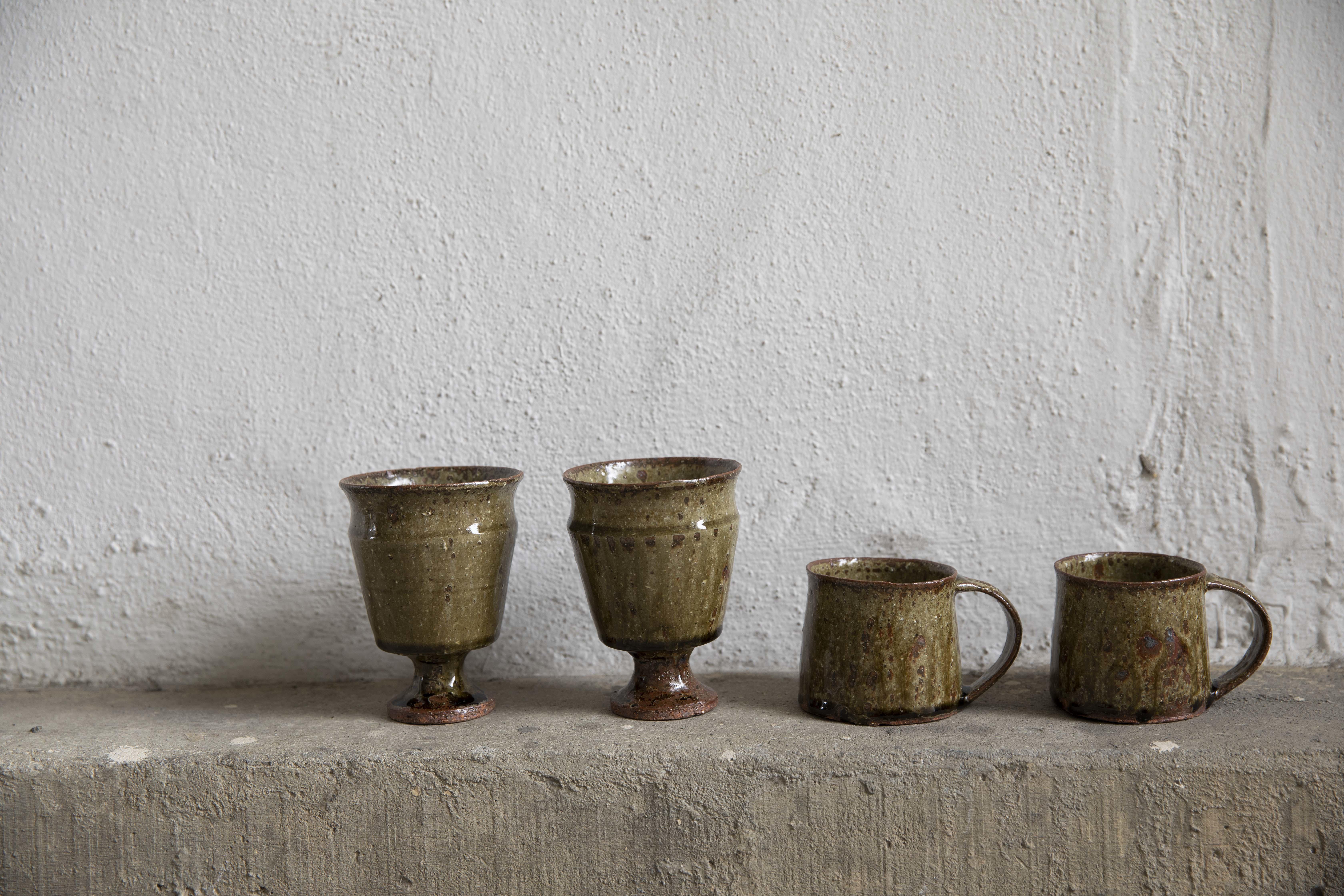 どっしりと存在感のあるゴブレットに、取っ手の曲線が美しいマグカップ。どちらも土の表情が生かされていて、見れば見るほど面白い。そんな思わず見惚れてしまうような作品をつくるのは、宮城陶器の宮城正幸さん。伝統的なかたちのなかに、どこか新しくてモダンな印象を与えるうつわを手がけている。