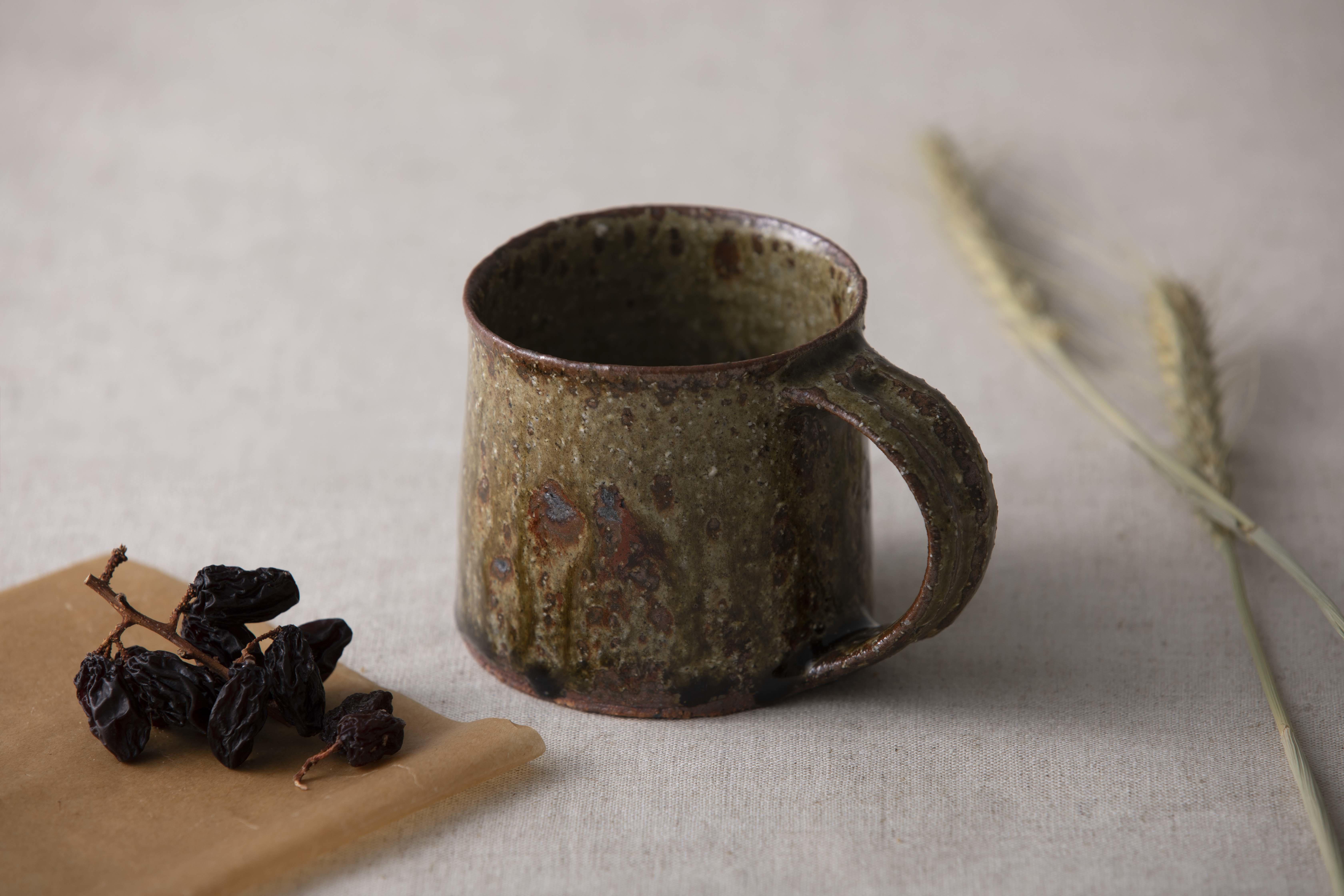 手に収まりのいいサイズのマグカップは、つるりとした感触でありながら、焼き目によってざらっとしていたり、凹凸があったり。何度も触りたくなるような土の質感が味わい深くて魅力的。