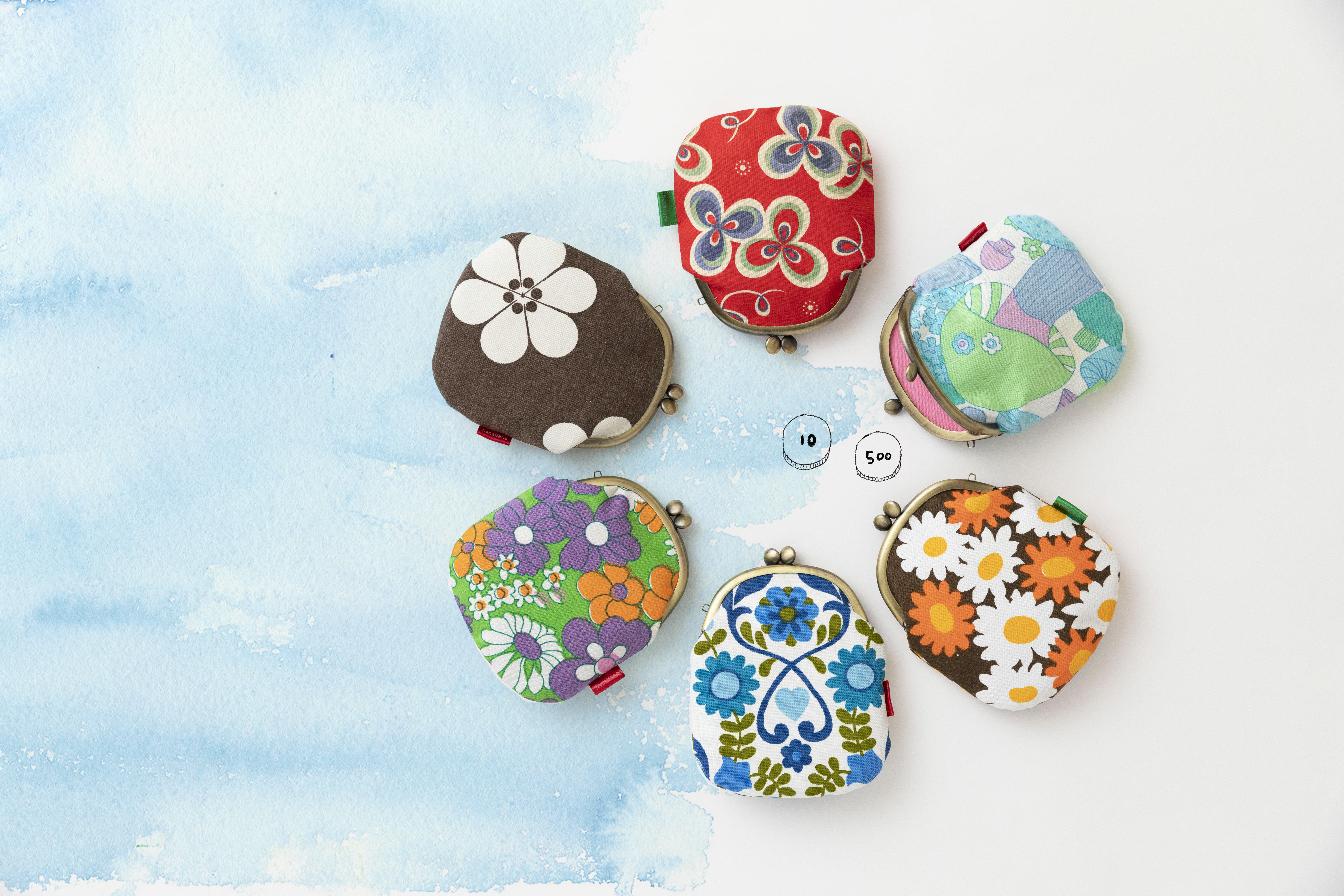 カラフルな色合いに、レトロなデザイン。kanahanaの小物たちは、出会った時に心をキュンとときめかせてくれる、そんな作品ばかりです。「生地はここのもの」と決めずに、世界中のあちらこちらで見つけた布を使って作っているから、その珍しいデザインについつい目を惹かれちゃうんです。
