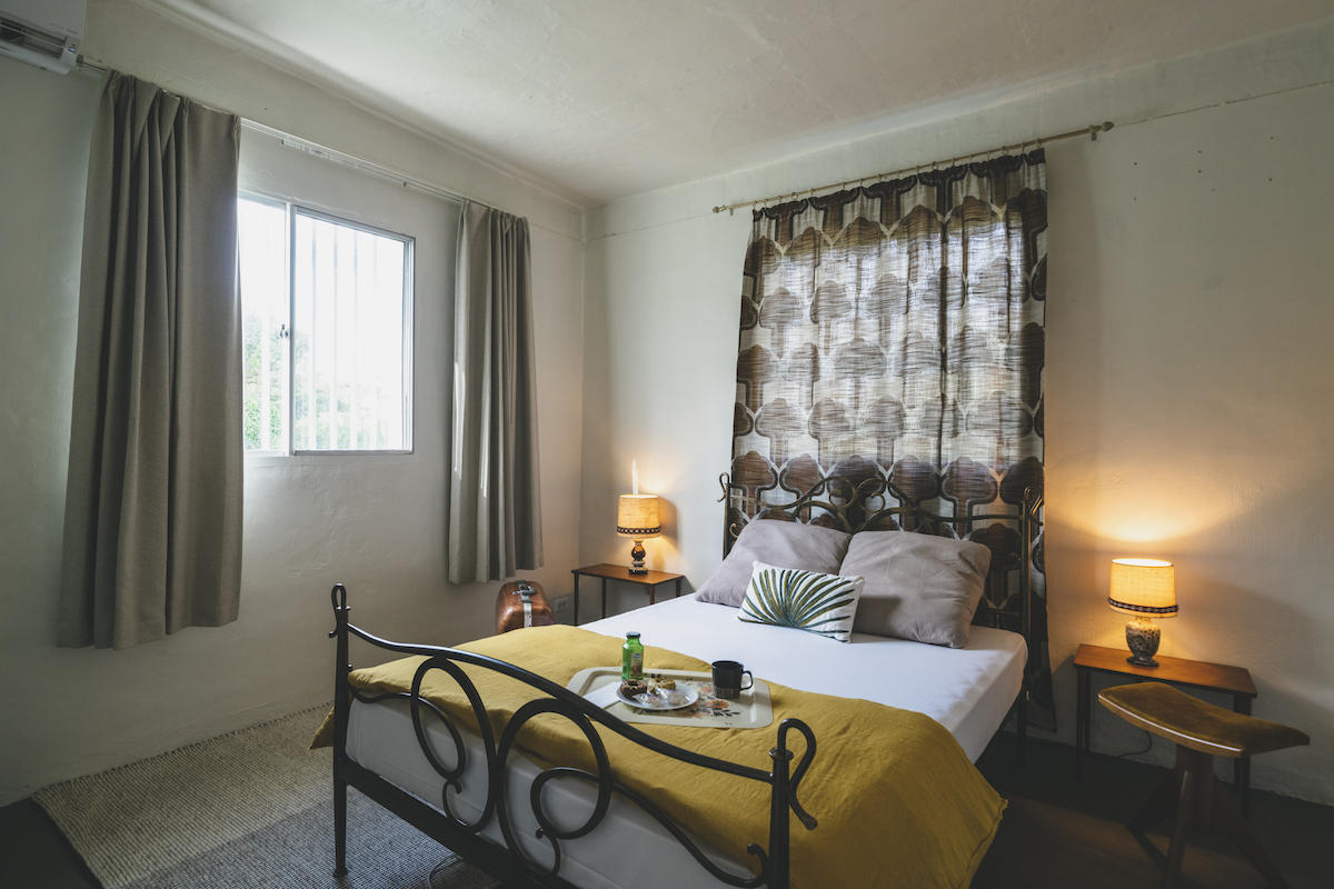 一方で、間取りは外人住宅の良さを生かして変更はしておらず、内装もシンプルに仕上げている。インテリアは、建築当時のミッドセンチュリーな世界を意識して、アンティークな家具などを配置。また、照明を使った空間づくりに定評のあるバナナコンセプトの仲宗根さんが、外人住宅に合わせてベッドルームやリビングなどの器具をチョイス。キッチンもタイルを貼り替え、明るい雰囲気となった。