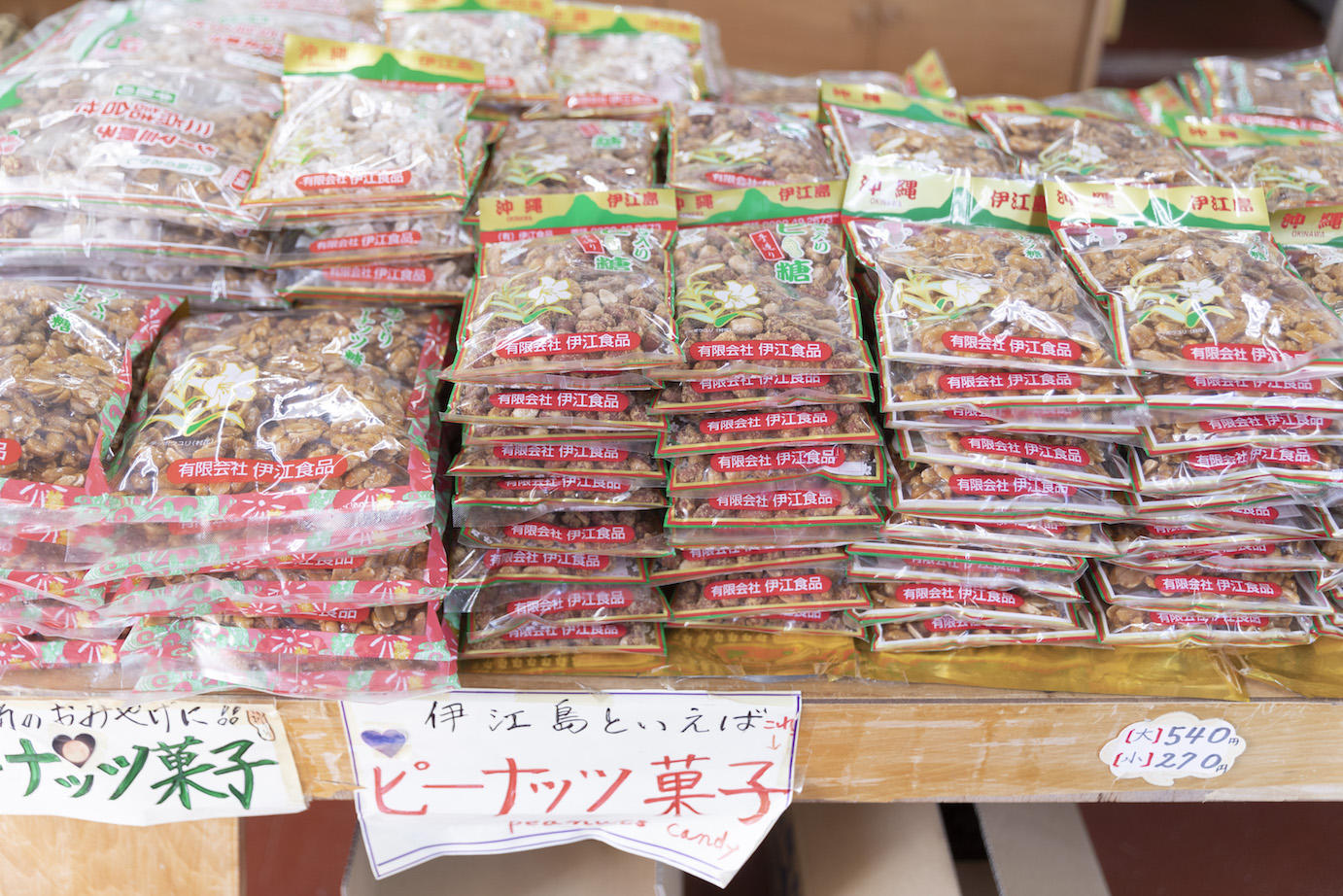 島に着いたら早速、港の売店で黒糖ピーナッツを発見。旅のおともを手に入れて、島の中心地へ出かける。