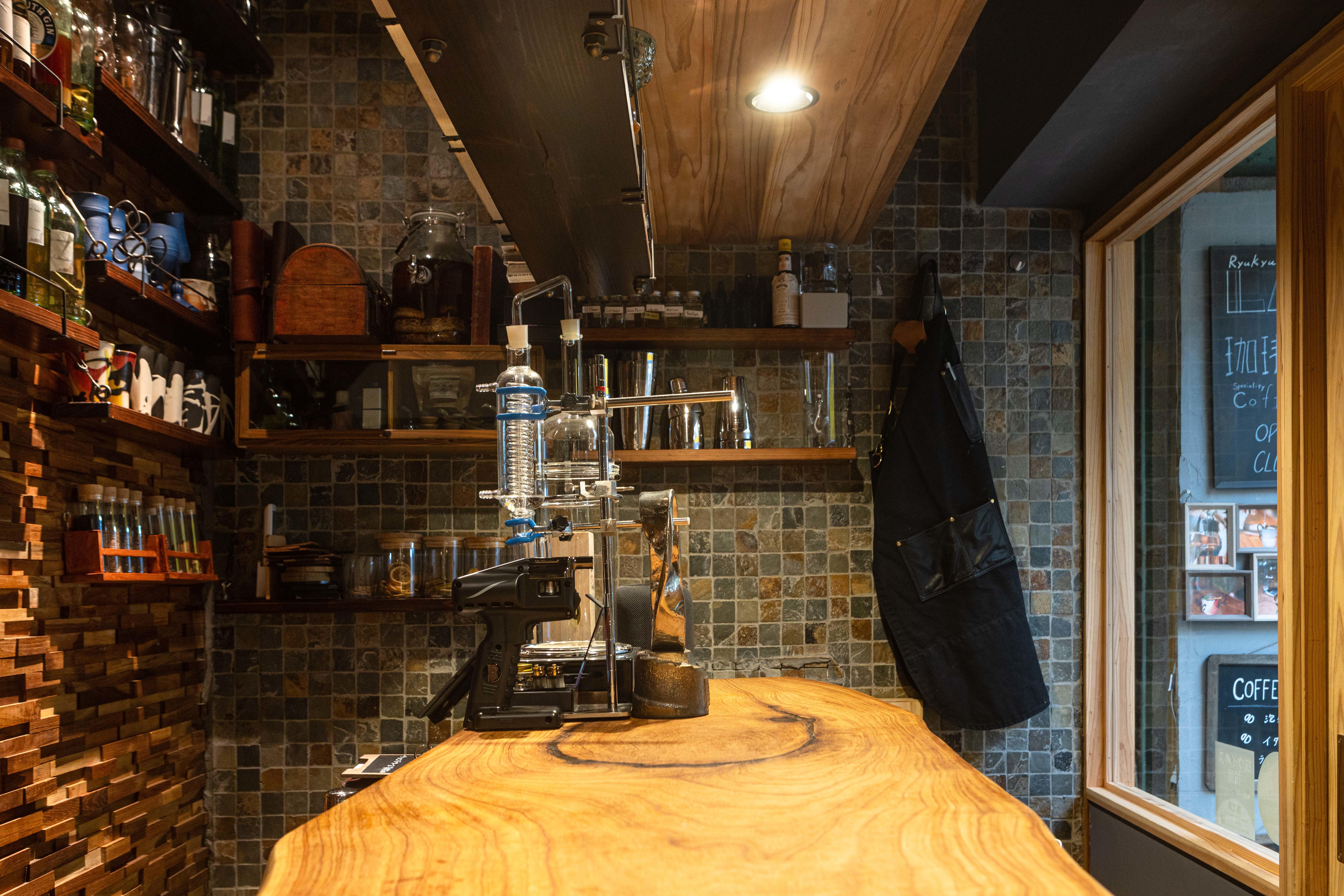 琉球ドリンクラボは、那覇のマチグヮー(市場)の中でひっそりと店を構えるバー。特に人気なのは、パッションフルーツのスモークを閉じ込めたバブルを割ると、爽やかな香りが漂うフローラルエスプレッソソーダ。数々のコンペで受賞経験のある中村さんが作るカクテルは、泡盛などの沖縄のお酒にコーヒー、そしてライチや金木犀などの自家製シロップを混ぜた"ミクソロジー"スタイル。「主役のお酒の風味をベースに、それに合うコーヒーやシロップを何度も微調整してカクテルを作ります」。究極の一杯にうっとり。