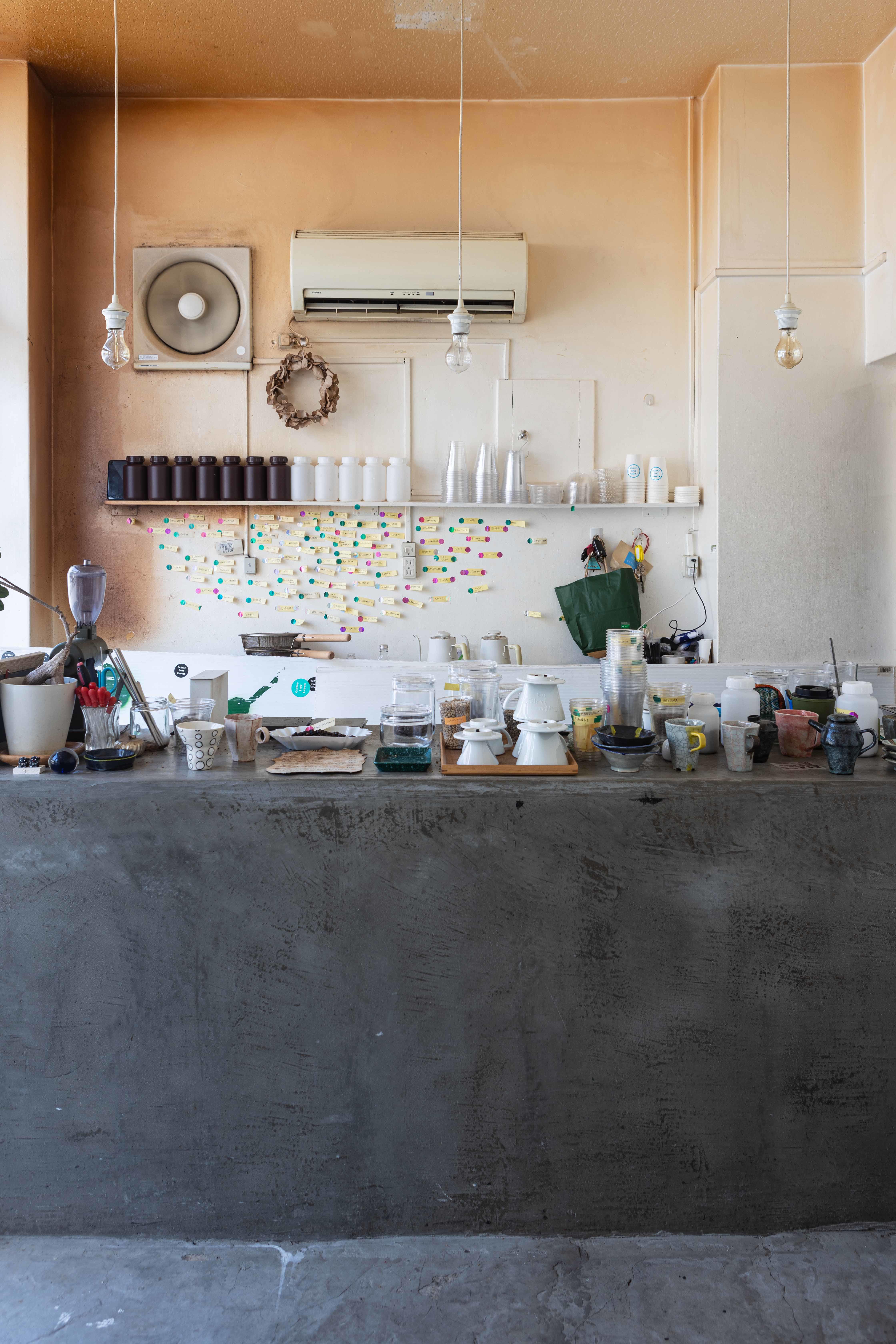 コーヒーエバーグリーンは、那覇市泊の一角にあるお店。ガラス越しに見える楽しそうな雰囲気に惹かれて扉を手にかけるお客さんも多いという。コーヒーは、その人に合ったテイストかつ雑味のない味わいにするために、なるべく注文を受けてからその場で豆を選び、焙煎して淹れる。「食後に食べたいアイスは?」というユニークな質問からおすすめの豆を考えることも。夜20時まで開いているので、仕事帰りにふらりと立ち寄りたい。