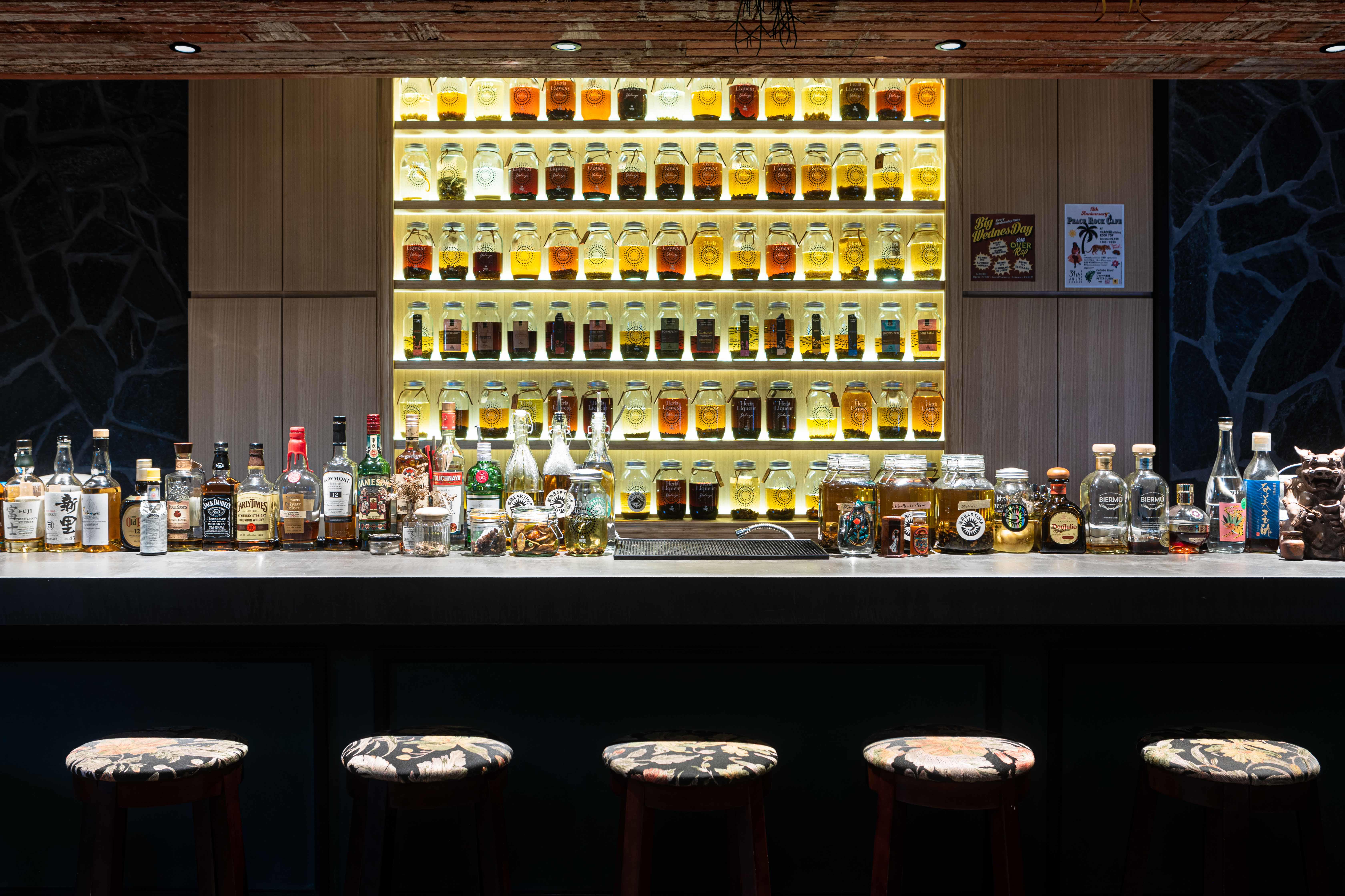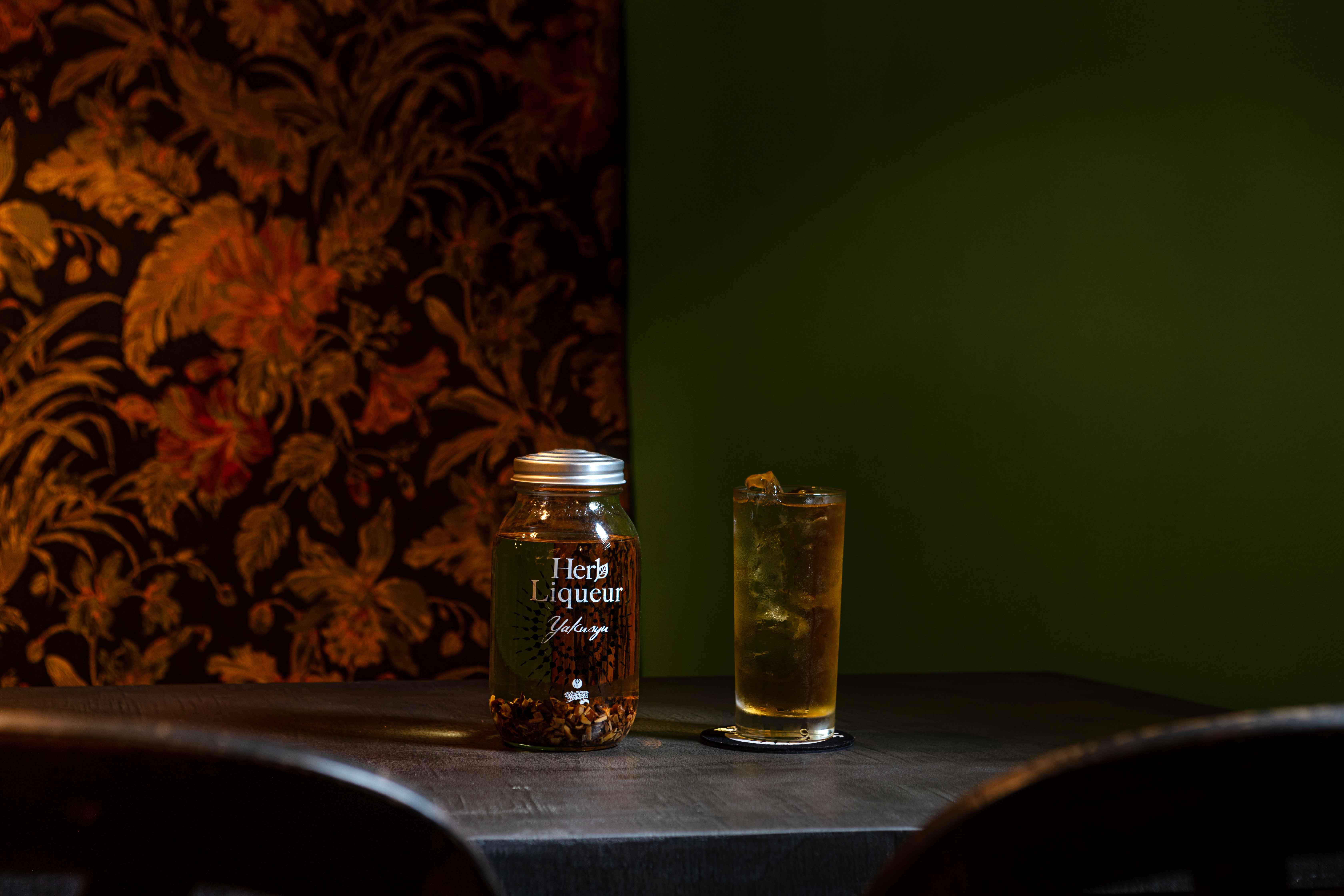 薬酒バータイムの扉を開けて一歩中に入ると、オタネニンジン、ローズヒップ、冬虫夏草などの漢方やハーブをウォッカに漬け込んだ薬酒がずらり。その中から、飲んでみたいものや体調に応じて、バーテンダーの松原さんがお酒をセレクトしてくれる。「体験したことのない味を味わえるというのが魅力かな。クセのあるものもあるけど、漢方そのものの味を楽しんでほしいです」と松原さん。味わい深い薬酒にハマってしまいそう。