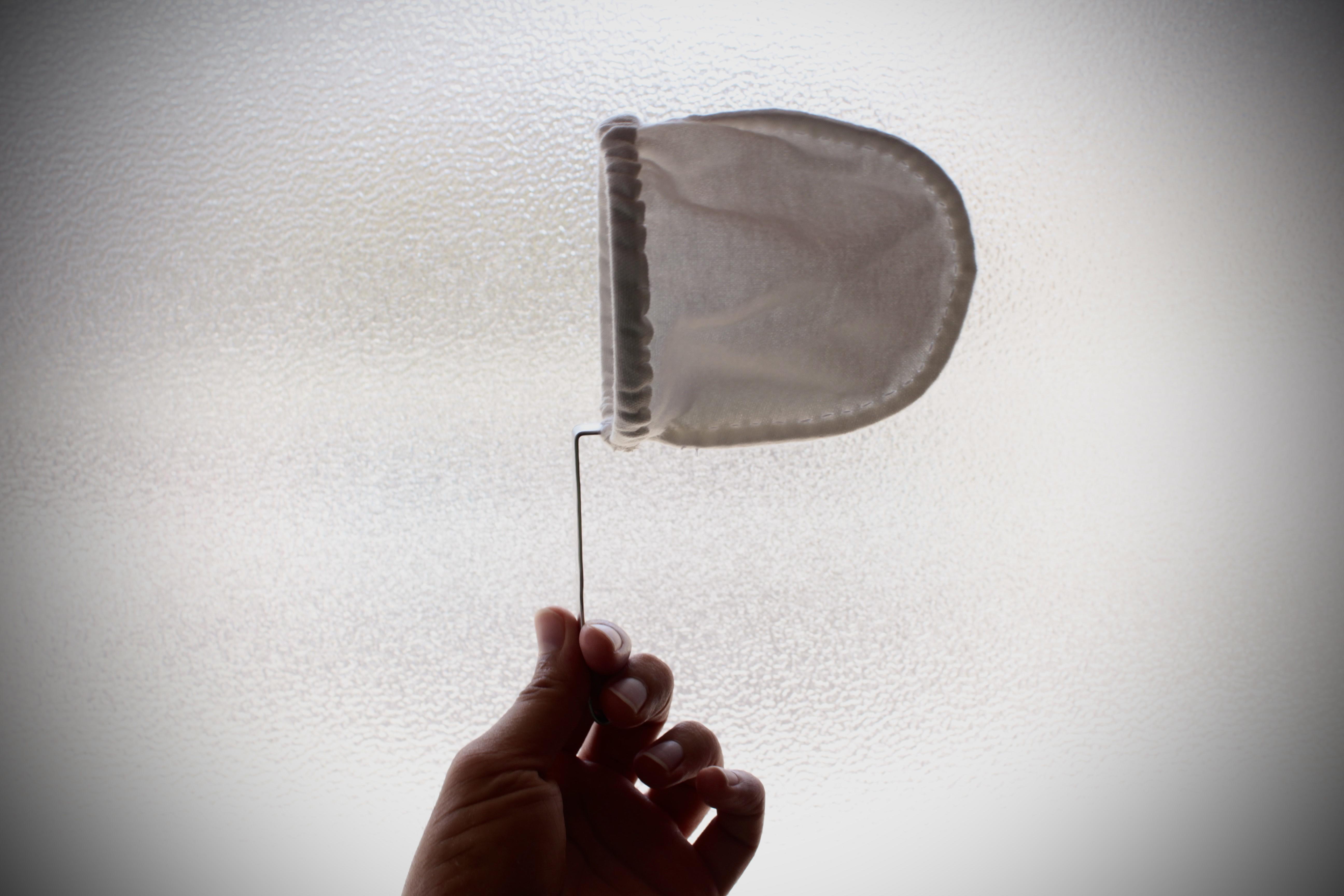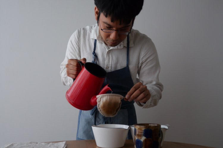 そしてもうひとつ、知念さんといえば、ネルドリップ。使用するネル(布)は手作りするというこだわりぶりです。銀座にある老舗のカフェ・ド・ランブルの関口さんの淹れ方をリスペクトしていて、実際にお店に足を運んで、お弟子さんからネルの切り方、縫い方、淹れ方を習ったこともあるといいます。