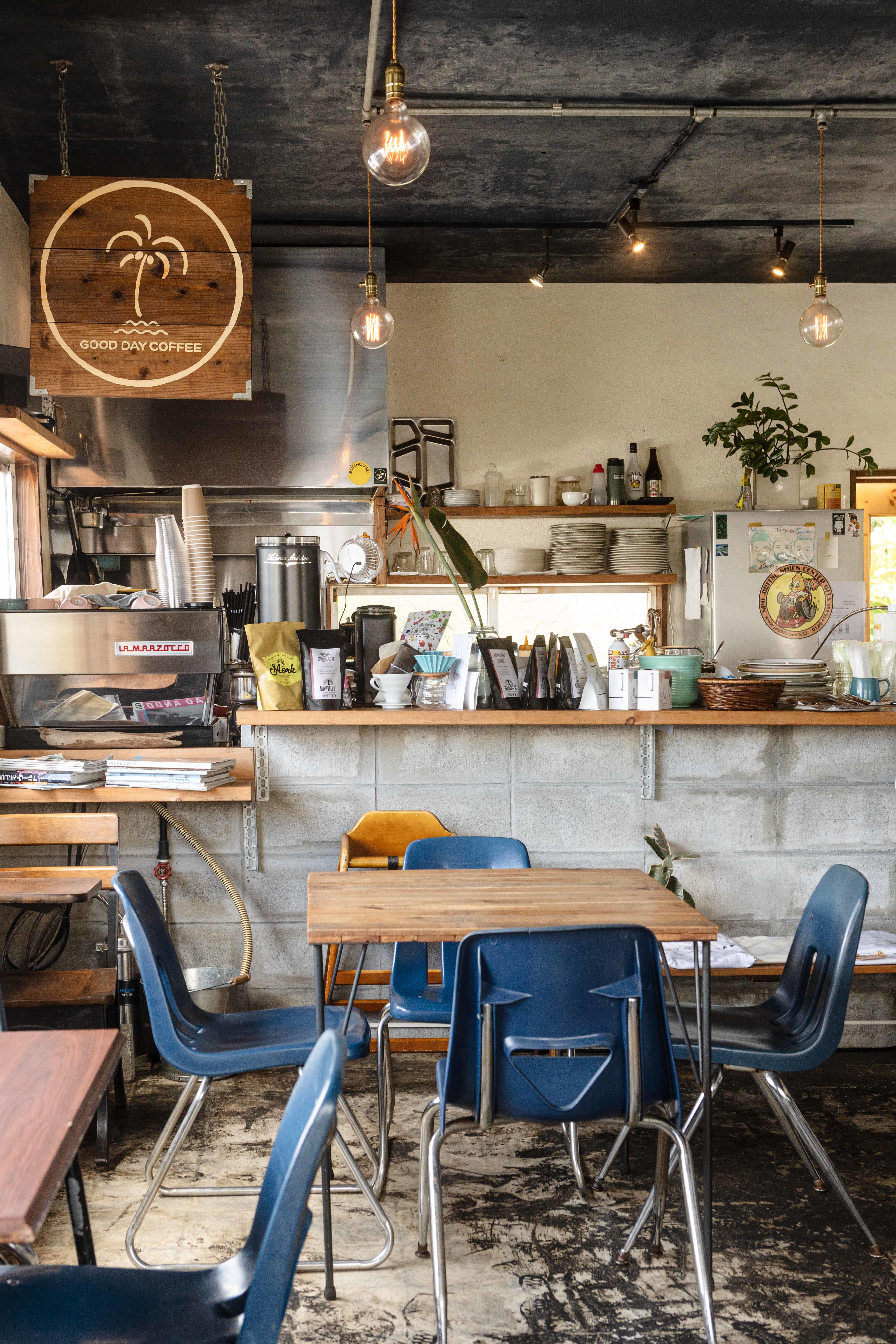 北谷町砂辺にあるグッデイコーヒーは、店主の宮里達也さんがオーストラリアのコーヒー文化に魅了されて始めたお店。オープンは朝の6時。おいしい朝ごはんとコーヒーを求めて、毎朝店内は賑わいをみせる。「オーストラリアでは出勤前にカフェでコーヒーを飲むのが日常なんです。そんな風に一日をスタートできる場所を沖縄でも作りたいなと思って」と宮里さん。浅煎りのオリジナルブレンドのコーヒーは、朝にぴったりな味わいだ。