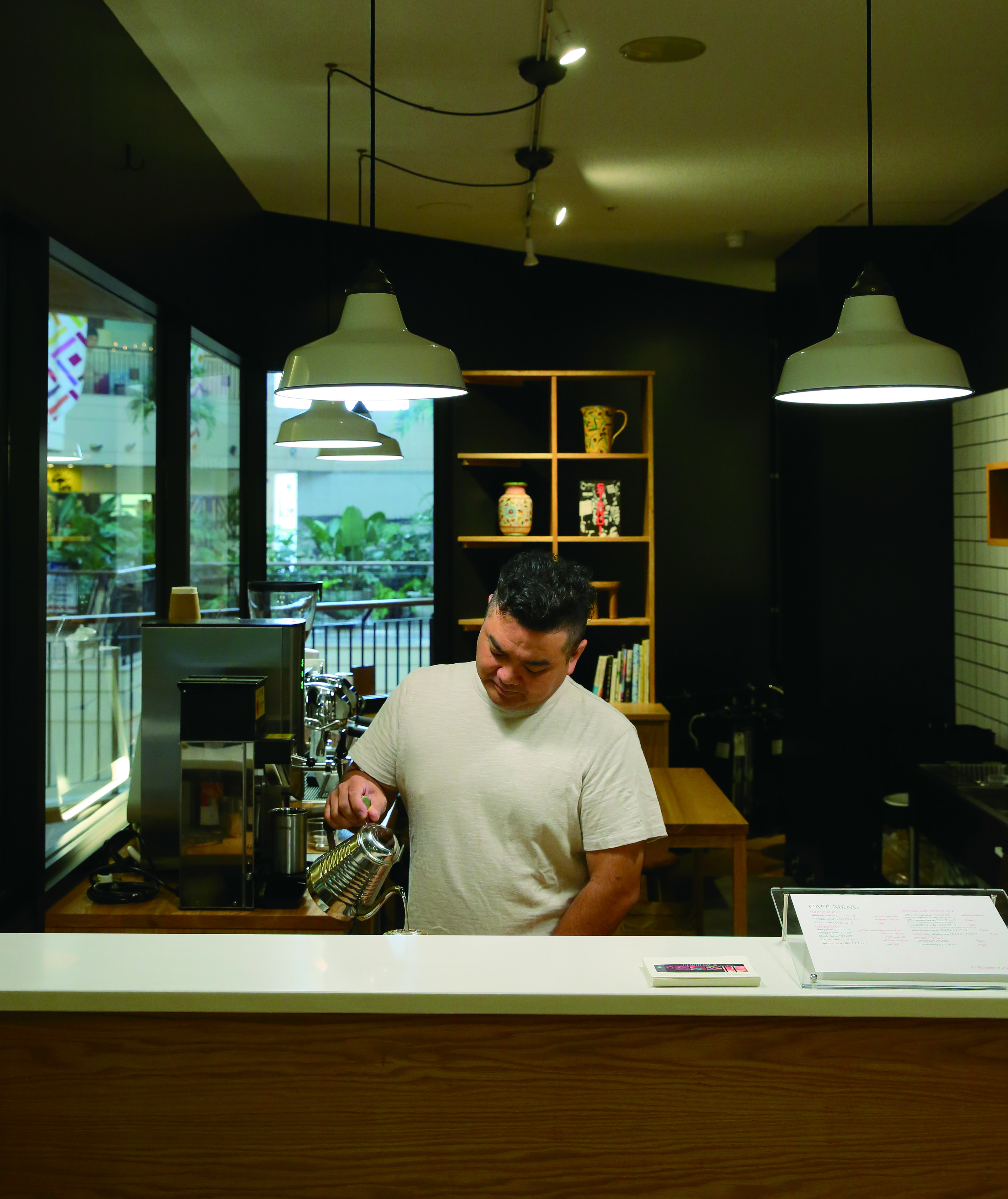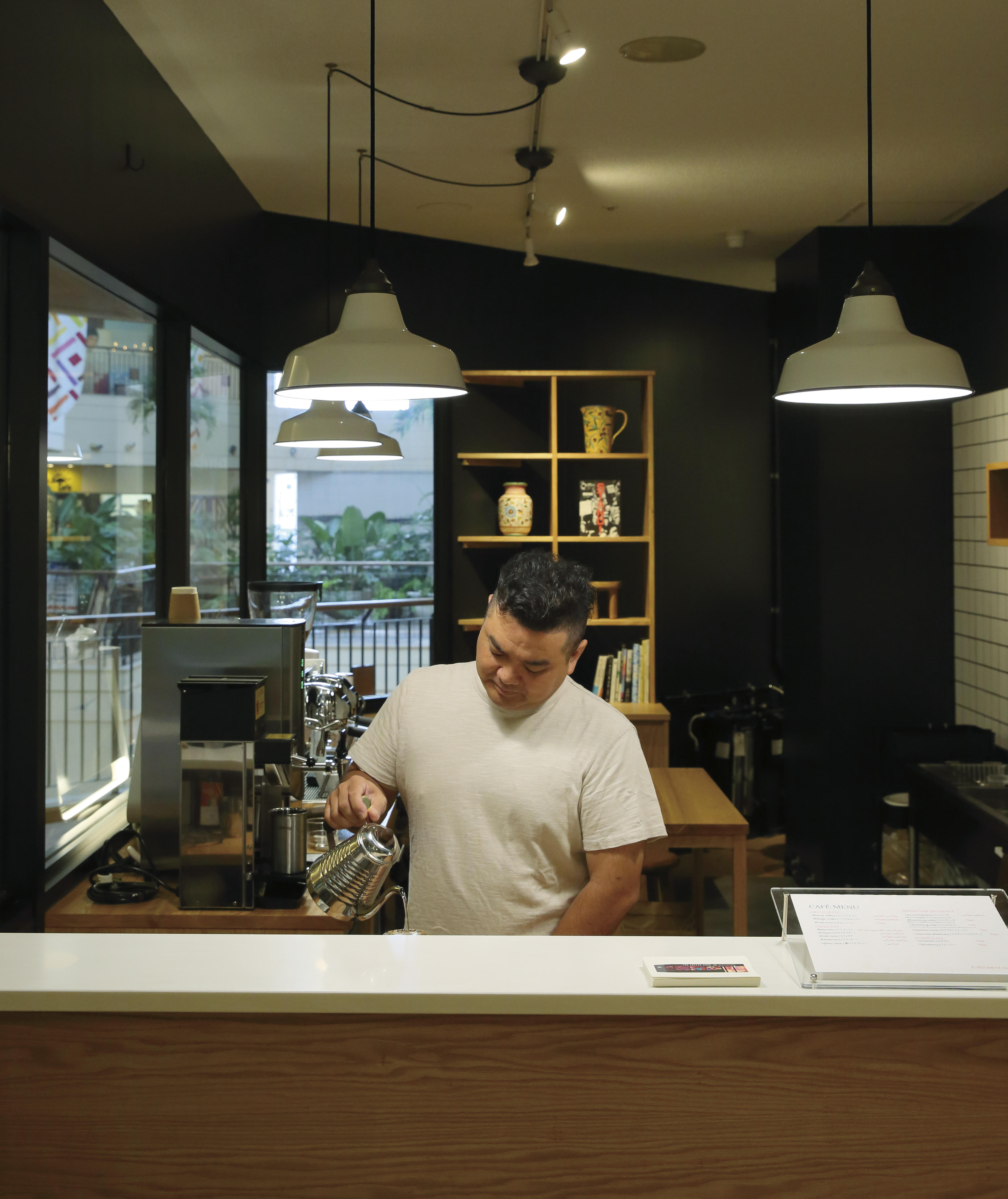 おきなわいちば78号で取材したハミングコーヒーの末吉業人さんとは、おきなわいちば48号「コーヒーの時間」(2015年冬号)以来の再会でした。あの頃とかわらず、周りを幸せにしてくれる笑顔と、まっすぐな想いで、新しいお店「ハミングコーヒー」のことについてお話ししてくださいました。今回の78号では、ハンドドリップ中の末吉さんの写真を大きく掲載。それまでほがらかに笑っていらっしゃったのに、ケトルをもった瞬間、真剣な顔つきでリズムよくお湯を注ぐ所作が印象的でした。![]()